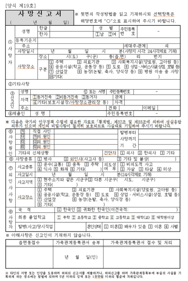 사망신고시 필요한 서류