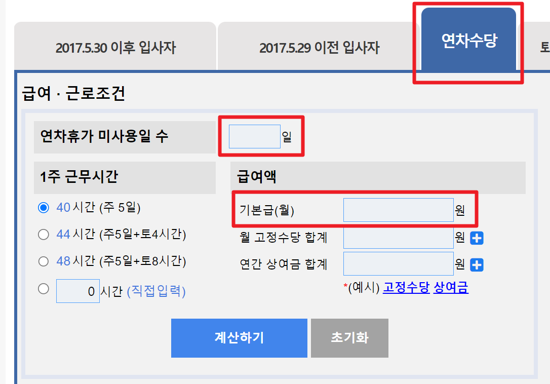 가장 먼저 해당 연차수당 계산기로 이동합니다.