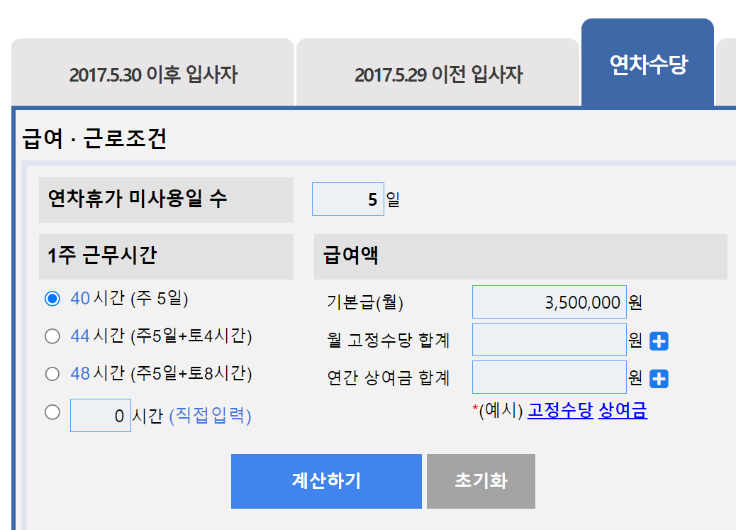 아래에서 연차일수 계산기를 통해 나의 연차휴가일수를 계산해보시기 바랍니다.