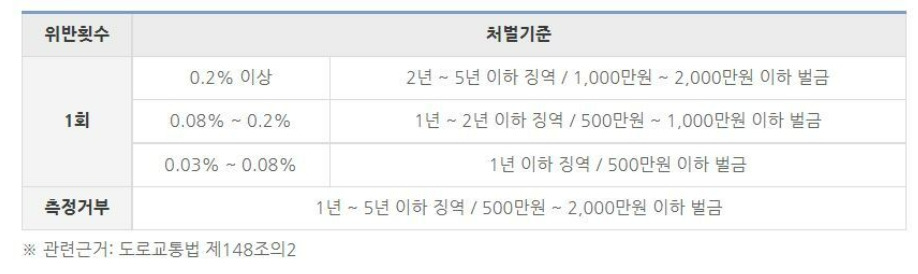 이 기준을 초과하면 음주운전으로 간주되며, 이에 대한 처벌을 받게 됩니다.