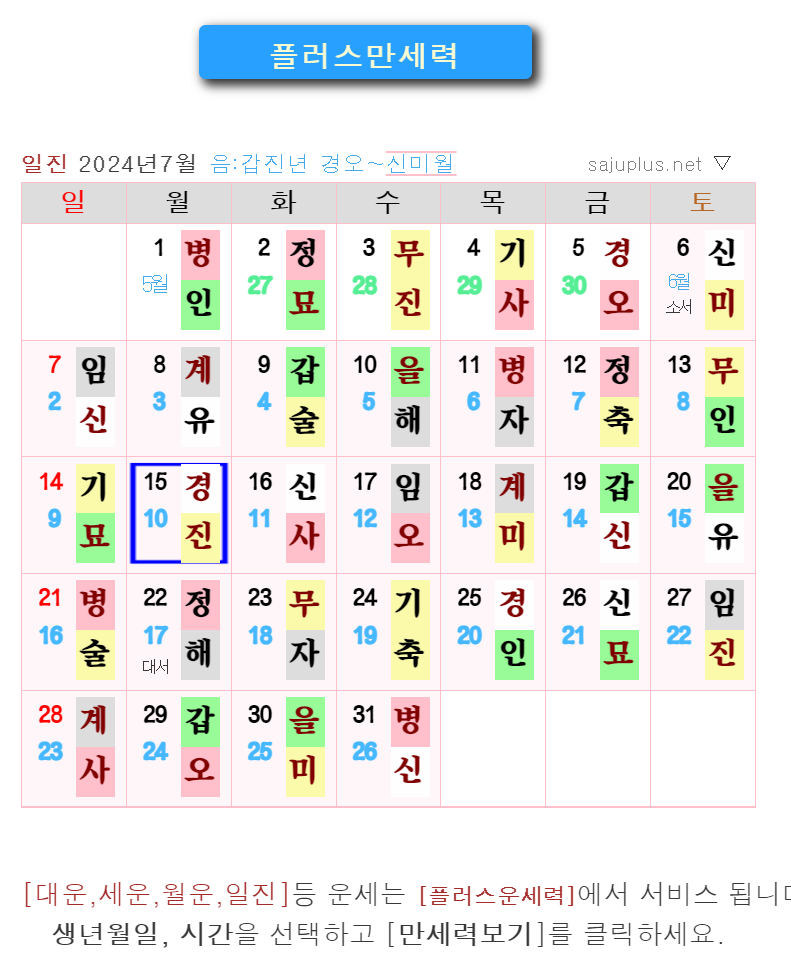 플러스 만세력 역시 만세력을 무료로 확인할 수 있습니다.