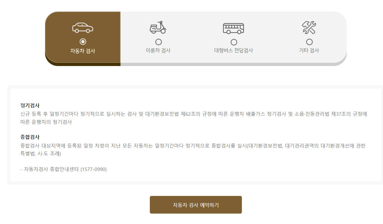 자동차검사기간인지 조회해보고 기간이 아닐 경우에는 기간을 알려주는데요 검사기간일 경우 예약 버튼을 통해 바로 자동차검사를 신청할 수 있습니다.