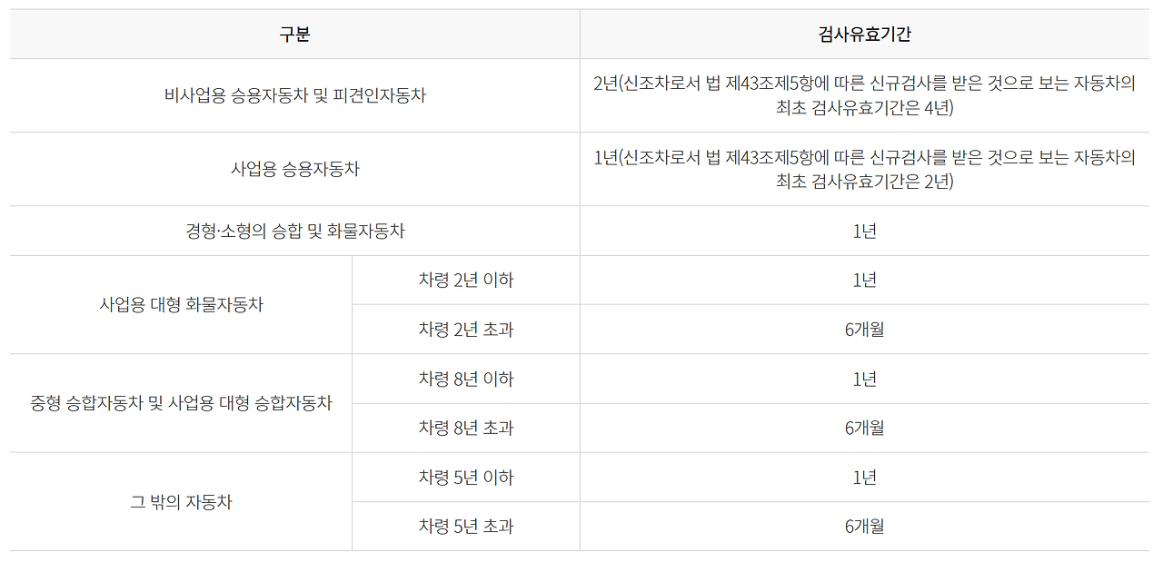 보통 사업용 차량의 경우 유효기간이 짧고 오래된 차량일 수록 유효기간이 짧은데요, 아래에서 자동차 정기검사 유효기간을 만나보시기 바랍니다.