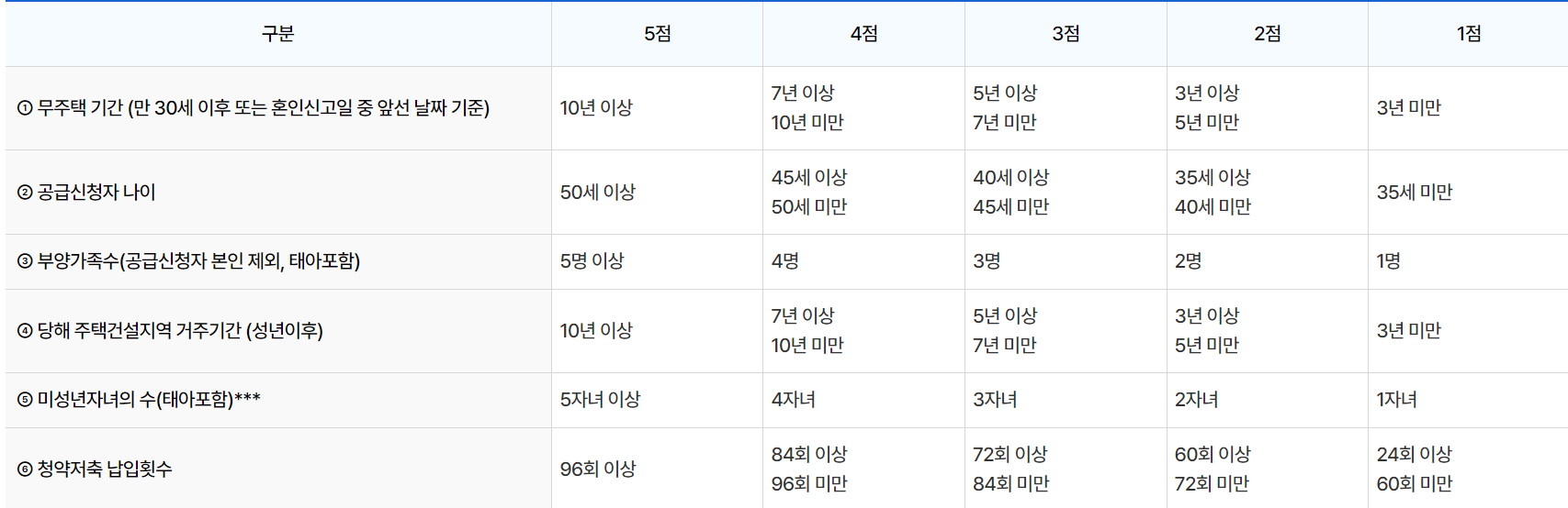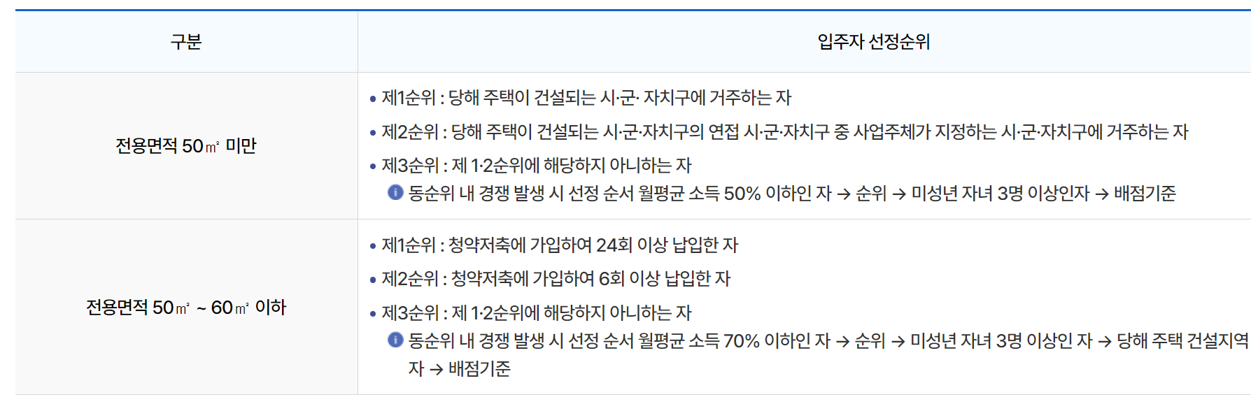이 외에도 입주자 선정시 전용면적에 따라 다른 조건들도 자격조건에 해당합니다.