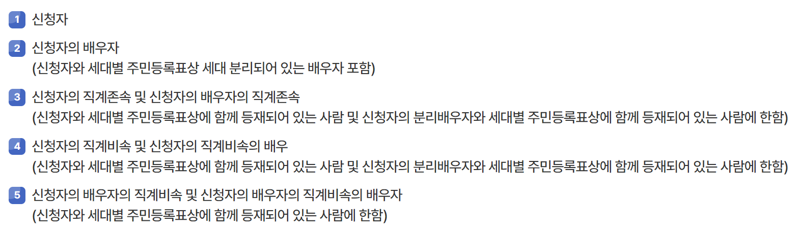 무주택자는 신청자 외 배우자와 함께 살고 있는 모든 세대원까지 무주택이어야 합니다.