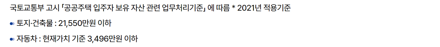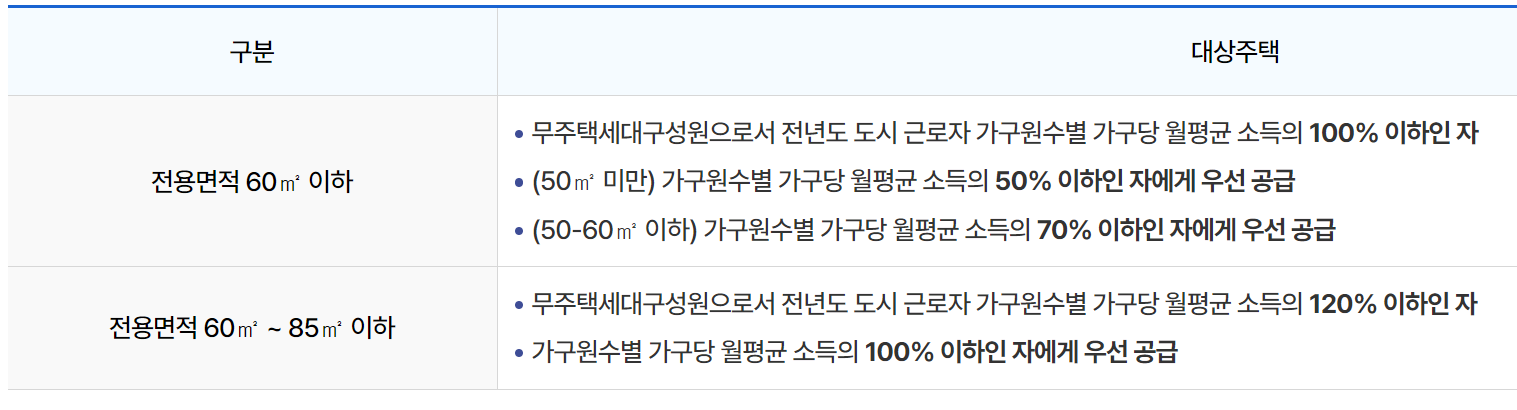 이 처럼 무주택자이면서 자산기준 위 조건 이하에 해당하고, 소득 기준 역시 전용면적당 월평균 소득의 100% 이하여야하기 때문에 내가 이러한 자격에 해당하는지 잘 살펴보시기 바랍니다.