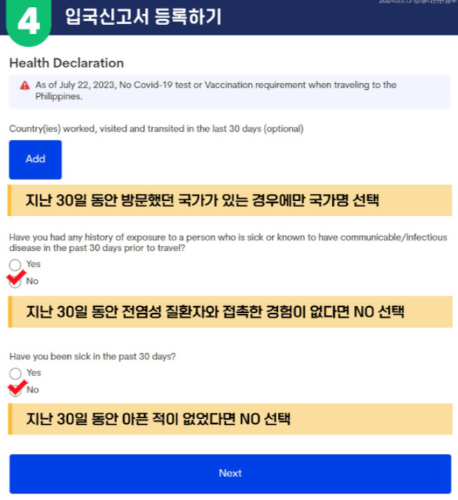이 이트래블 사이트를 통해 우리는 필리핀 입국 전 필수적으로 작성하여 여행자의 백신 접종 여부와 건강 상태를 확인할 수 있도록 합니다. 따라서 정직하게 작성해야하고 안전한 여행을 보장하기 위한 절차라고 생각하시면 됩니다.